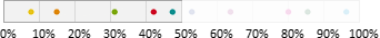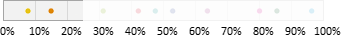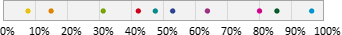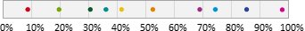 Auswahl-Wahrscheinlichkeit in ProzentGeben Sie einen Prozentwert zwischen 0 und 100% ein. Mit dieser Wahrscheinlichkeit gehört ein Abonnent zur Zielgruppe. Beispielsweise bewirkt ein Wert von 25%, dass ungefähr (siehe Hinweis) ein Viertel aller Abonnenten zur Zielgruppe gehören. Dazu verteilt die Software alle Abonnenten auf einem Zahlenstrahl zwischen 0 und 100%. Bei 10 "bunten" Abonnenten könnte eine Variante so aussehen:
