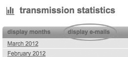 In the transmission- statistic you see the data collected from die Software (Traffic, Total). Also you see, if exist, the numbers of test-sendings, clicks on the subsriber-link and the number of subscribers who have completed the optin-confirmation. Next to the view 'display months' you also can select 'display e-mails'. So die Software outputs the above mentioned figures for each mailing.