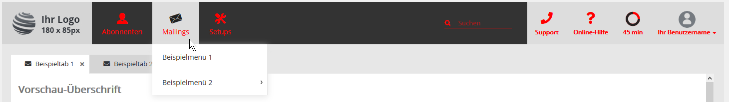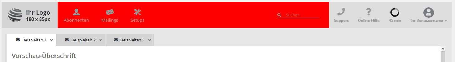 Die Bedienelemente der Vorschau dienen als optisches Beispiel, ohne dass sie eine Funktion ausführen. Sie können gefahrlos die optische Wirkung verschiedener Einstellungen testen. Erst mit Klick auf Speichern werden die Einstellungen in Ihren Account übernommen.