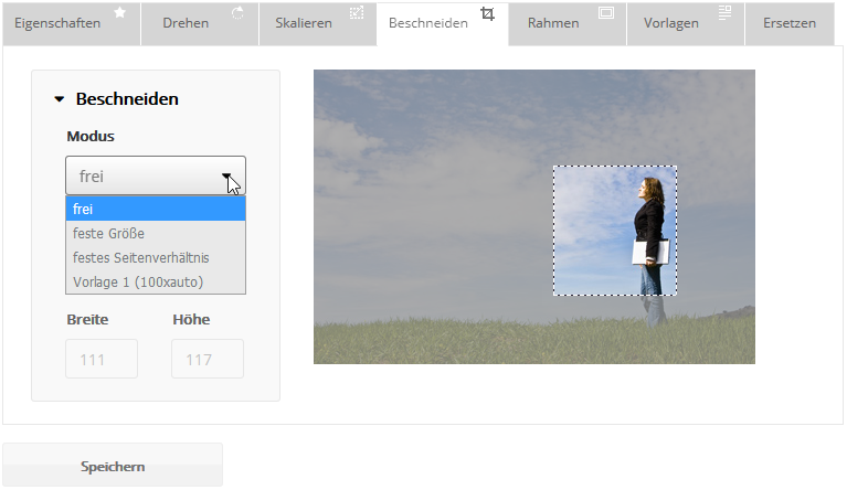 Mit dem Beschneiden-Modus können Sie die Größe Ihres Bildes beliebig anpassen. Ihnen stehen drei verschiedene Modi zur Verfügung: