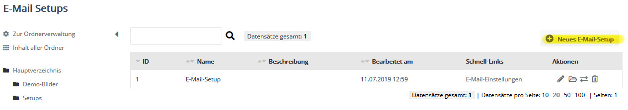 Über den Menüpunkt 'Mailingsetups' richten Sie regelmäßig wiederkehrende E-Mail Einstellungen wie Absender, Template, Format usw. als wiederverwendbares Setup ein. Damit sparen Sie Zeit beim Erstellen Ihrer Mailings. Die Nutzung von E-Mail Setups bietet sich zum Beispiel dann an, wenn Sie regelmäßig Presse-Mailings mit demselben Absender und Format versenden. |